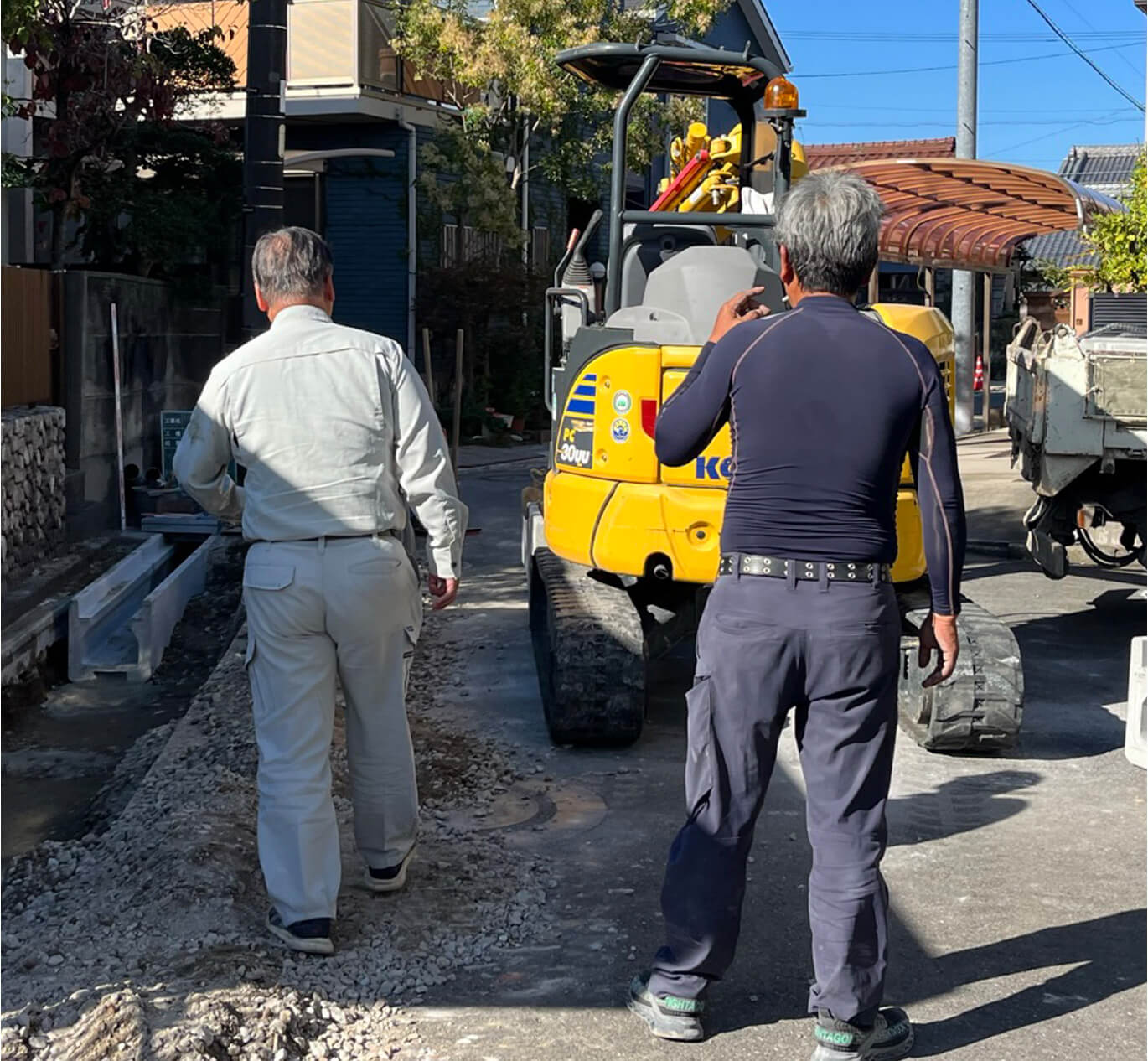 一宮市内を中心に、道路の側溝工事、舗装工事、水路工事などの公共工事をはじめとする土木工事を請け負い、